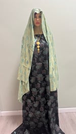 Our traditional Somali dirac farsawi set offers a luxurious, high-quality, soft, and smooth feel, comprising unsewn fabric with a matching scarf and inner slip.
