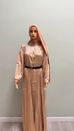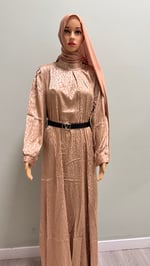 The long-sleeved, waist-snatching Modest Dress, crafted from soft, shiny satin or silk, comes with a free belt and offers a flattering, elegant, and comfortable fit as it runs slightly small, we recommend ordering one size up for the best fit.