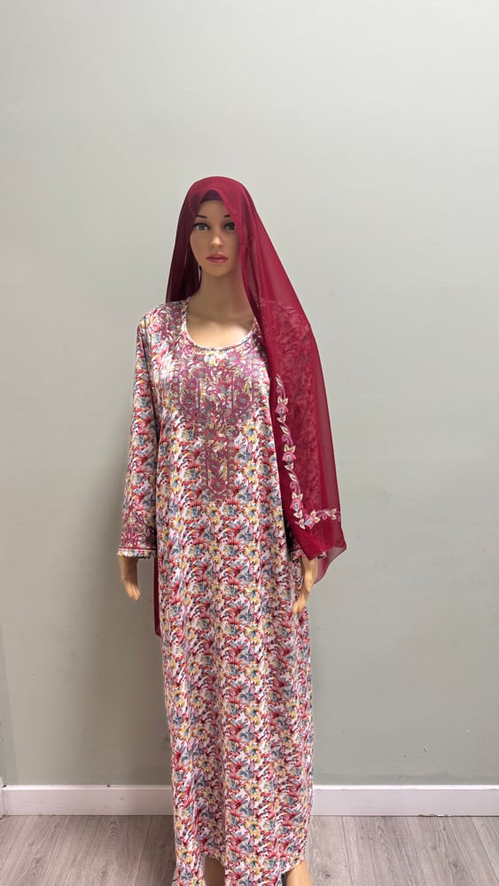 Adults Mukhawar Unique Print Silk Embroidered Dress with pocket in Multi Colors Casual Womenswear Summer Comfort One Floral