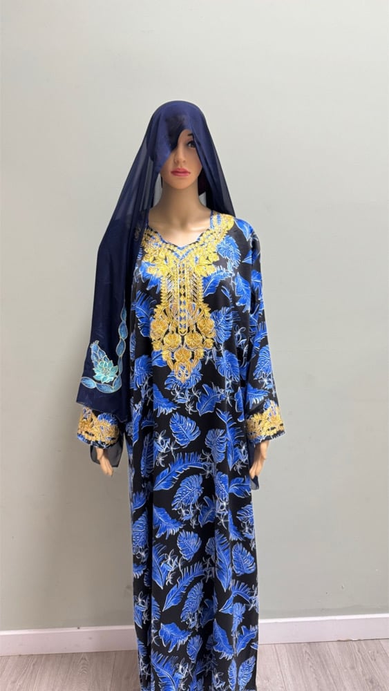 Blue-Adults Mukhawar Unique Print Silk Embroidered Dress with pocket in Multi Colors Casual Womenswear Summer Comfort One Floral